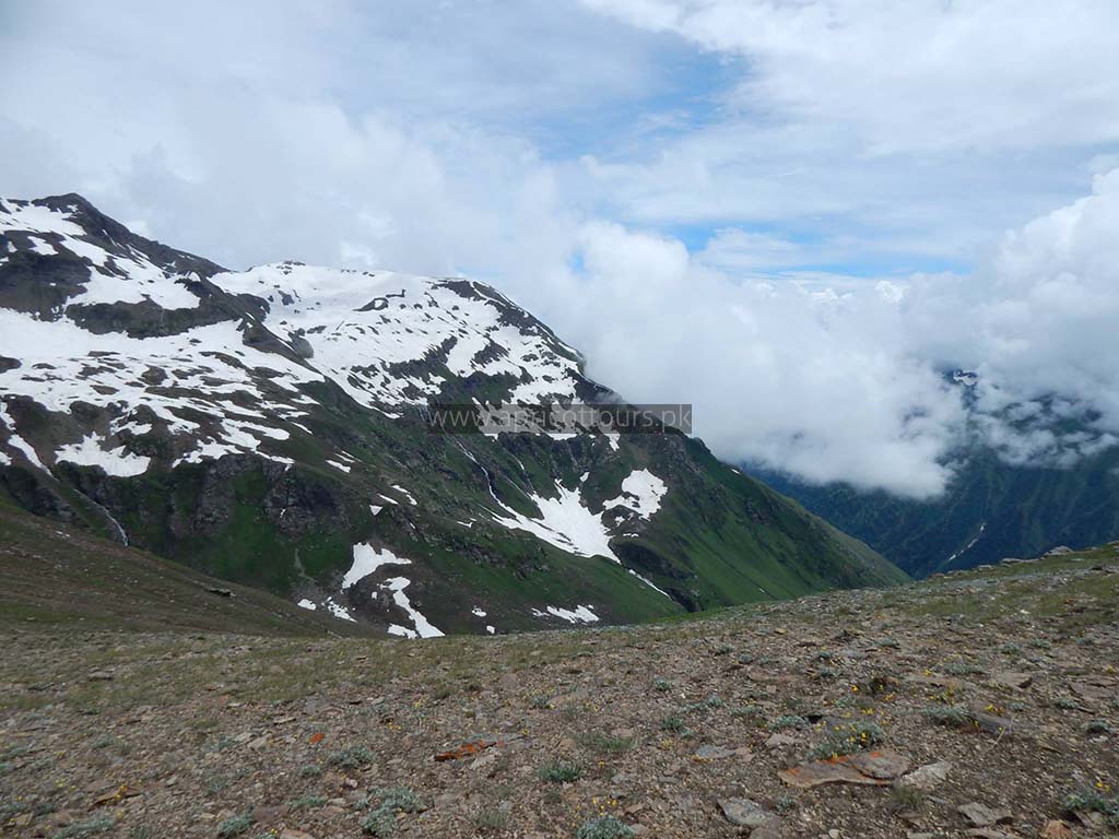 Day 4: Early morning trek towards Surgan pass / Jabba Galli pass. Crossing of steep pass. Enter Surgan Valley AJK in the noon. Continue descending towards valley and reached Jalkhad-Sharda road in evening. Hiring of jeep and 2-3hrs drive to Sharda. Night stay at hotel in Sharda.